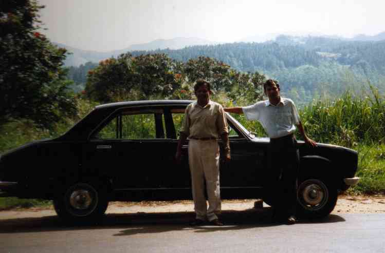 We went to Sri Lanka in December 1996. Back then (I don't know the prices right now) it was very easy and cheap to rent a car with a driver for a month. We paid about US$550 for all hotels and guesthouses (4 weeks) and a 2 weeks' tour with car.Since we did not have any information about the public transport, we decided to travel around with this luxurious option, especially since it was a good bargain. We even got a guide, so with the 4 of us we drove off trough the country. Ratna (l.) our driver and Suma (r.) our guide, together in an old Peugeot.